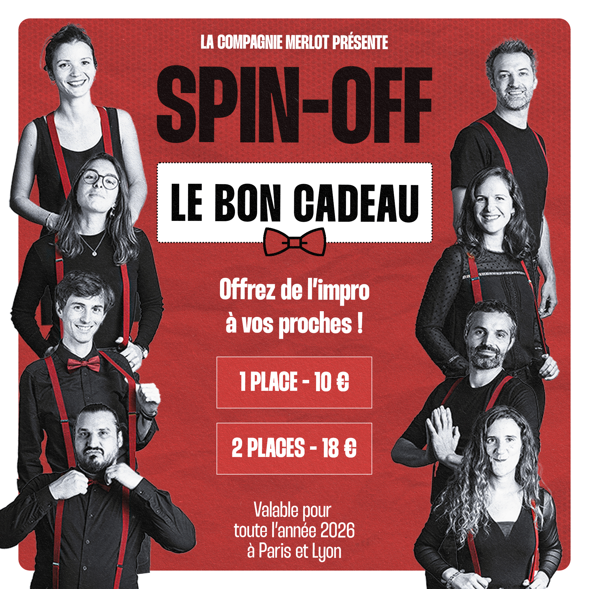 Le bon est valable pour toutes nos dates de l’année 2026 à Paris et Lyon, avec un tarif préférentiel de 10 € pour une place, et 18 € pour deux places.